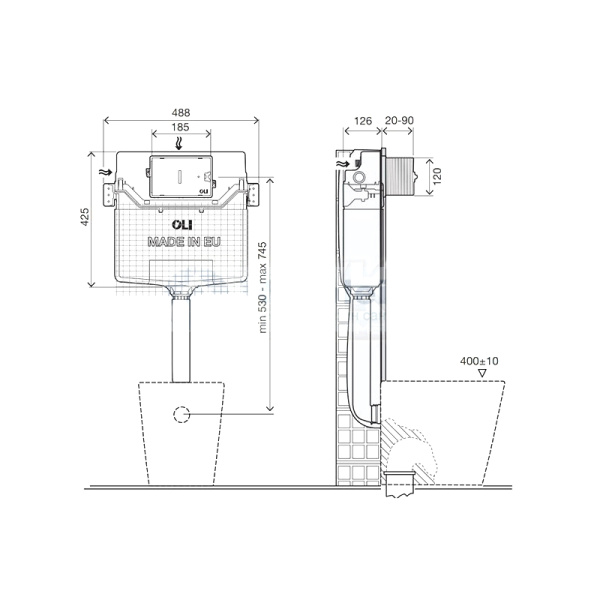 Встроенные бачки обеспечивают стильный, современный интерьер, так как все элементы системы скрыты внутри стены. Это придаёт санузлу аккуратный и минималистичный вид. - Экономия пространства