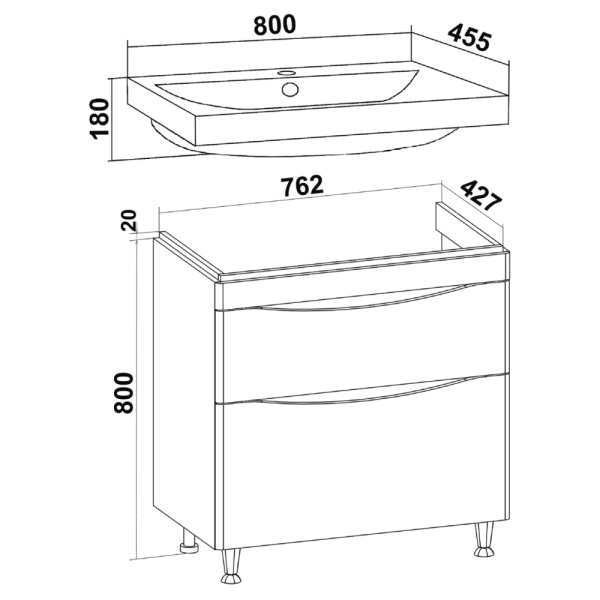 Тумба с раковиной Diborg Katarine 774215Н 80 см