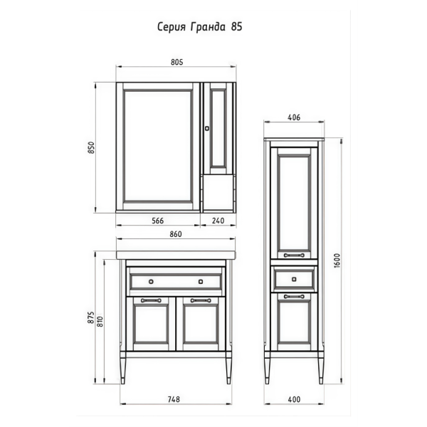 Тумба с раковиной 90 напольная Верона COMFORTY 00-00001972
