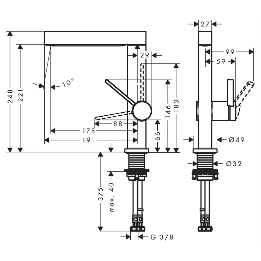 Высота до аэратора (см)