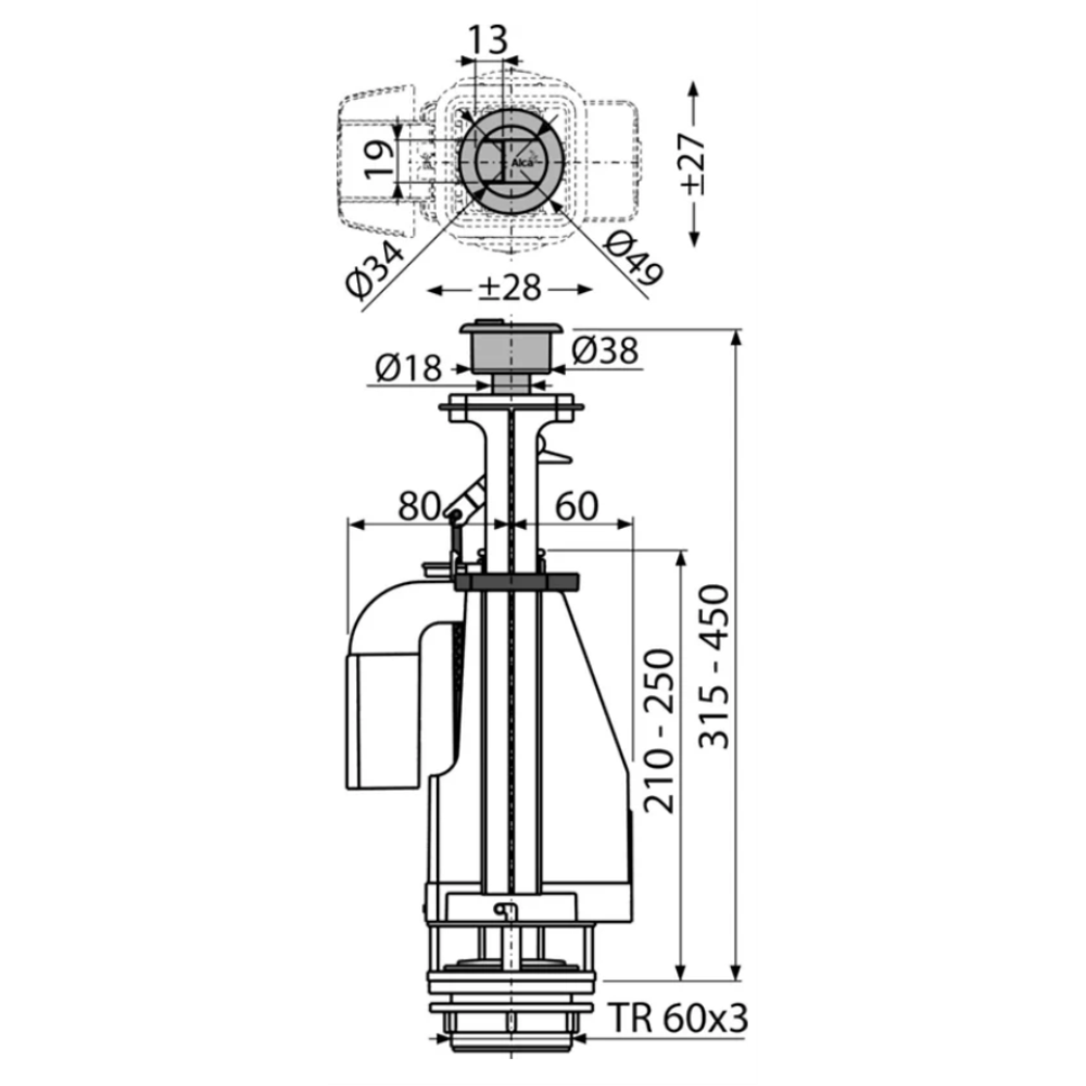 Сливной механизм двойной кнопка Alcaplast A08=A08A