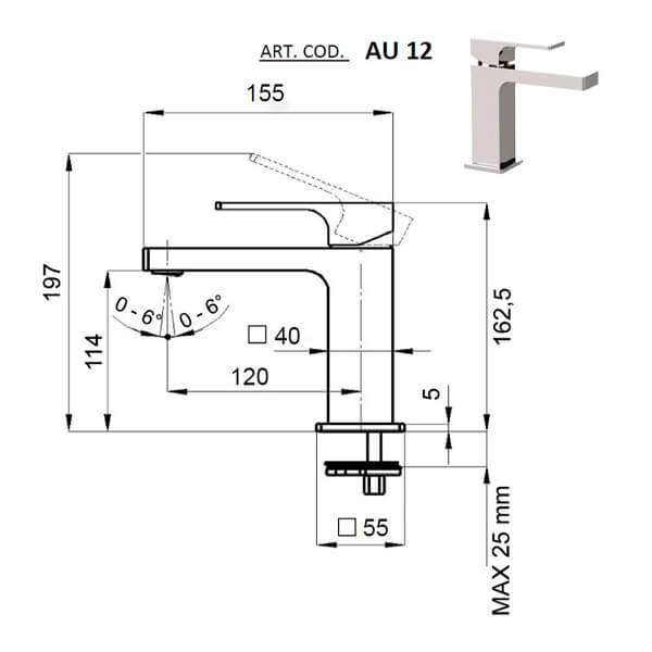 Смеситель для раковины Remer Absolute AU12NP брашированный никель