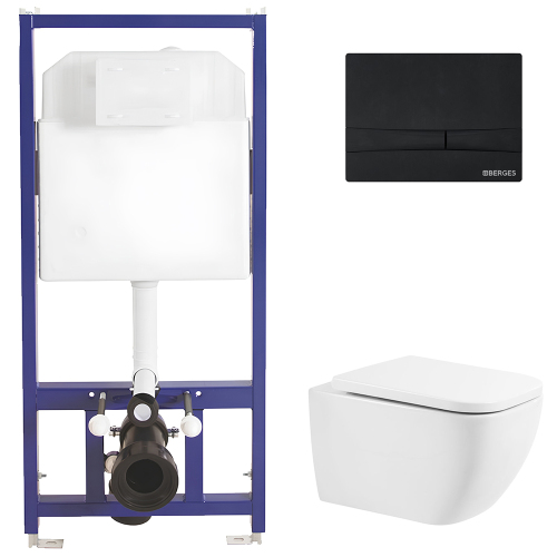 Комплект BelBagno 3в1: Инсталляция Berges 040000 + Унитаз подвесной BB10100CHR + Кнопка смыва Berges 040055 черная матовая