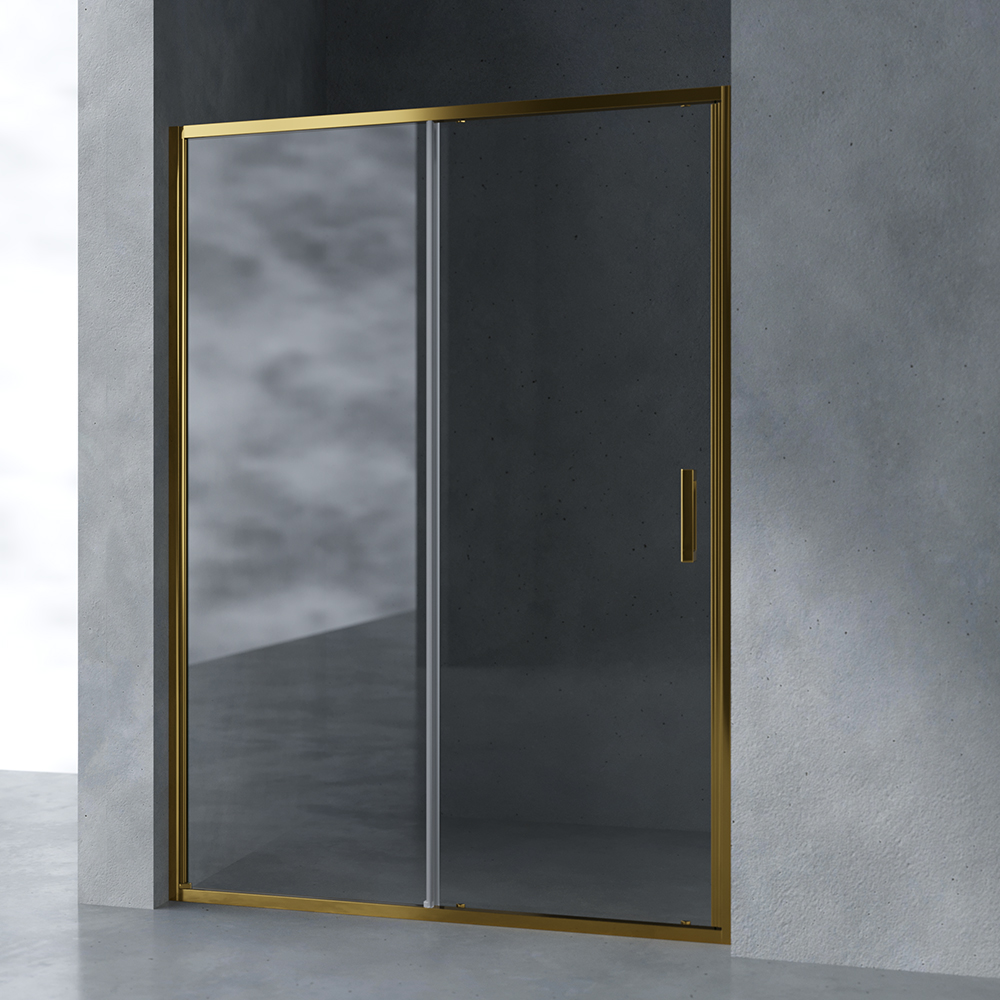 Душевая дверь в нишу AVS Вектор 140 см профиль брашированное золото, стекло прозрачное