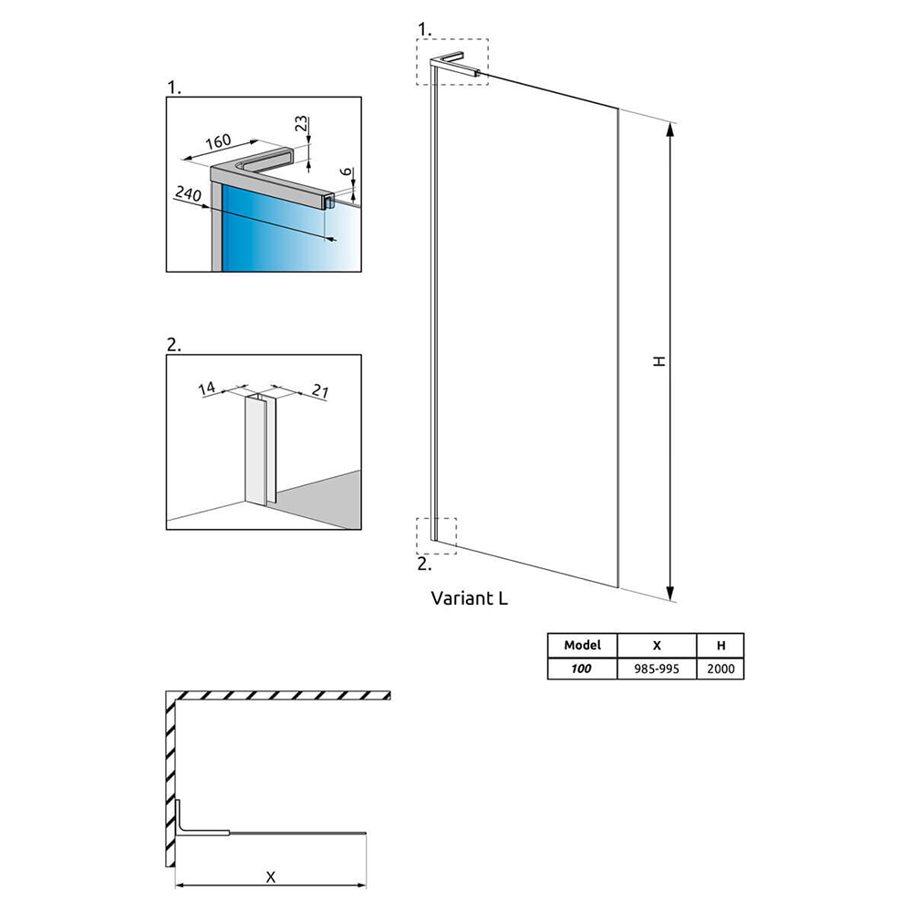Душевая перегородка Radaway Modo SL II 100 L профиль золото матовое, стекло прозрачное