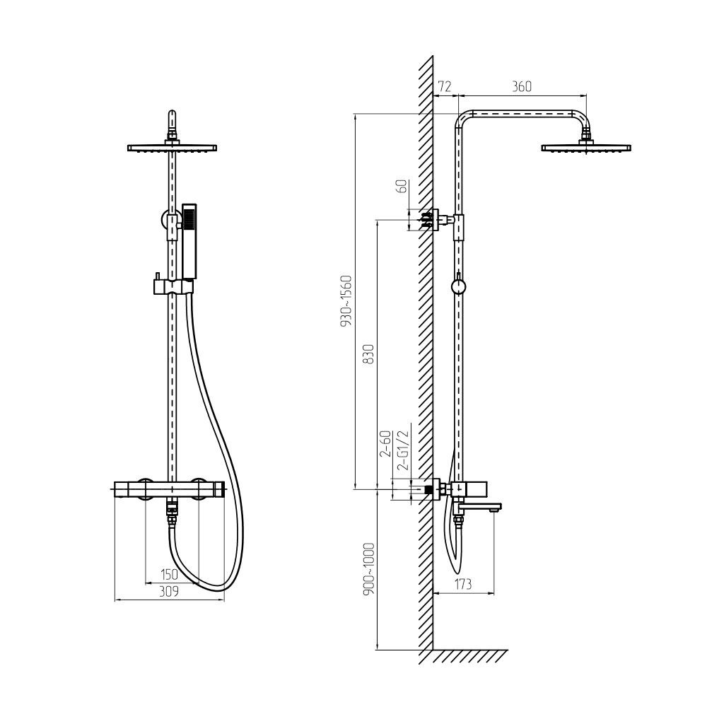 смеситель; эксцентрики; душевая стойка; верхний душ; ручной душ; душевой шланг; инструкция.