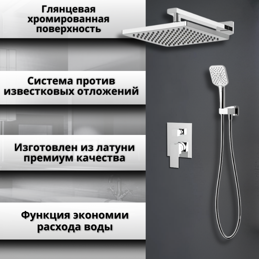 Функция экономии расхода воды, Система против известковых отложений, Регулируемый угол верхнего душа