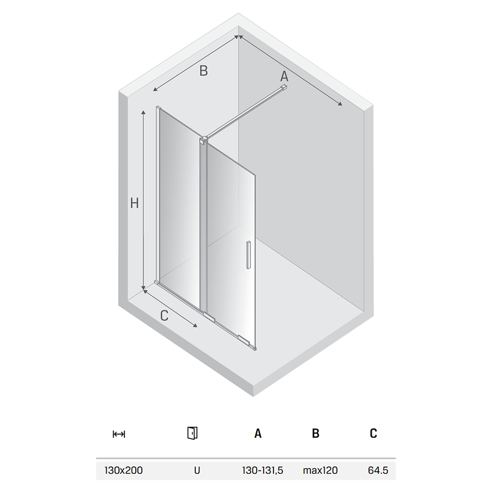 Душевая перегородка New Trendy Smart Black 130 профиль черный матовый, стекло прозрачное