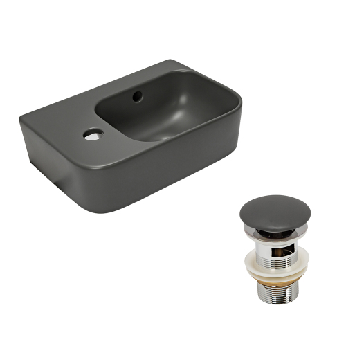 Рукомойник AVS Грэйс 37x25 R, темно-серый матовый с донным клапаном