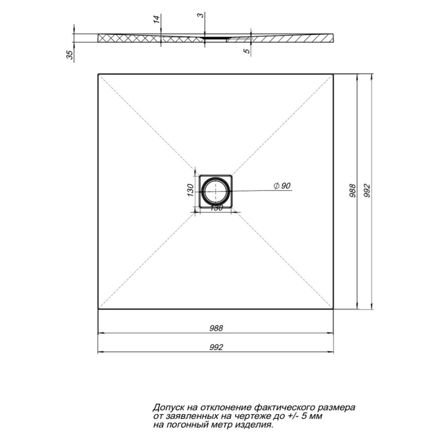 Поддон литьевой камень PRIORITY 100x100мм без сифона без накладки d=100 AQUANET