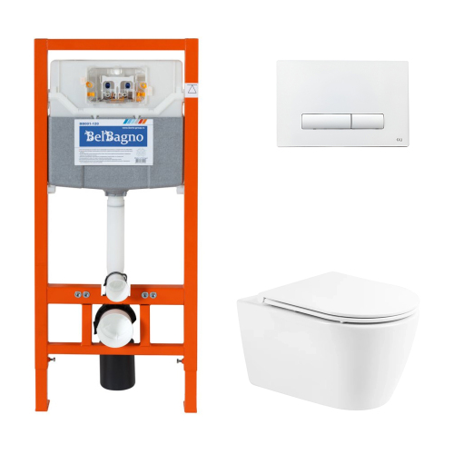 Комплект BelBagno 3в1: Инсталляция BB001-120 + Унитаз подвесной BB105CHR + Кнопка смыва OLI Glam 139184 белая