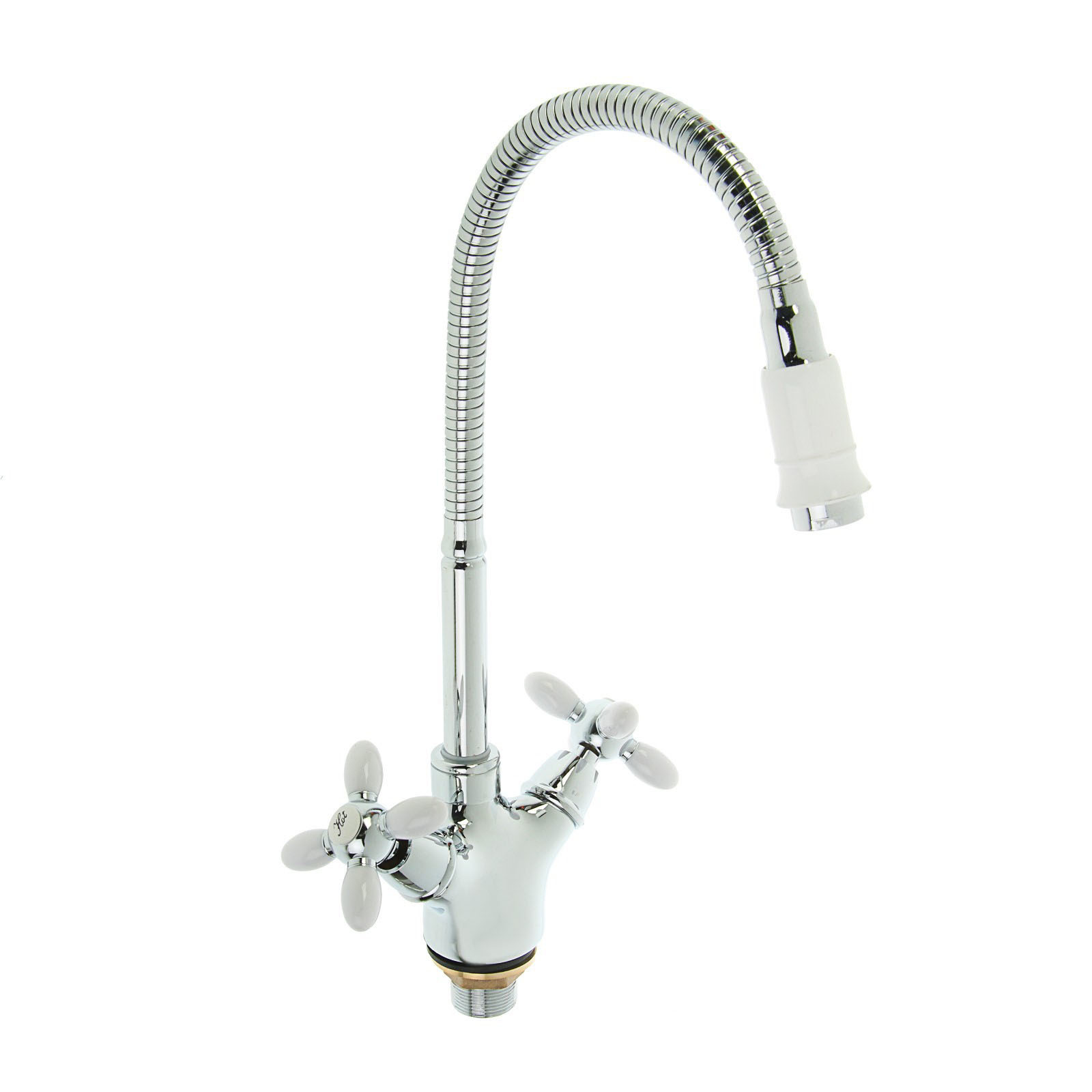 Смеситель д/кухни Accoona, двухвентильный, с гибким изливом, белый/хром
