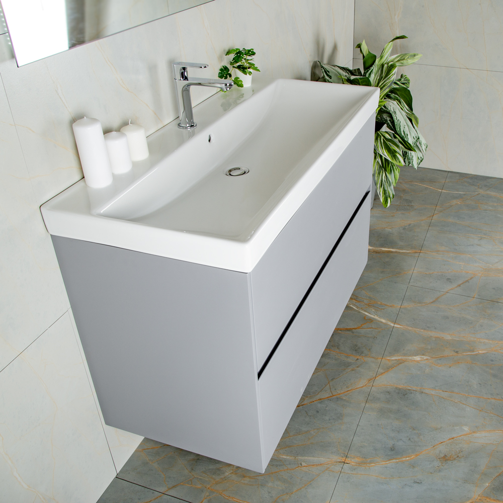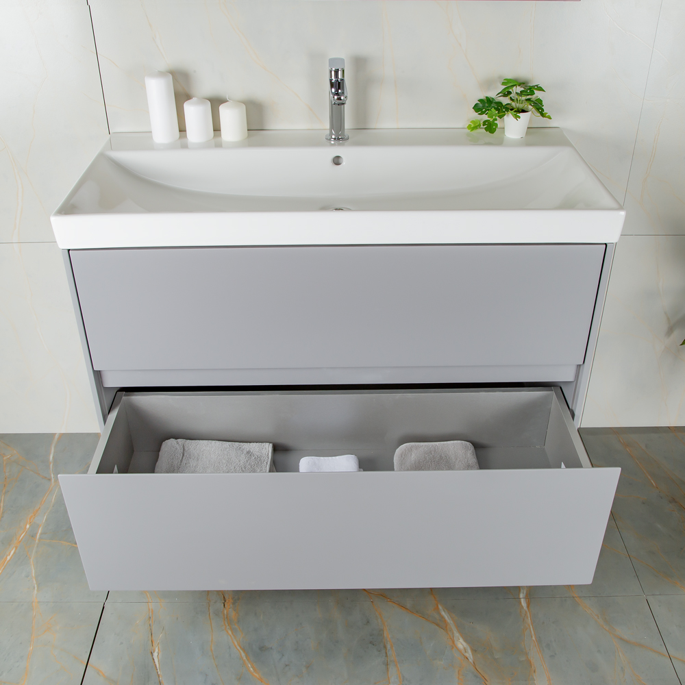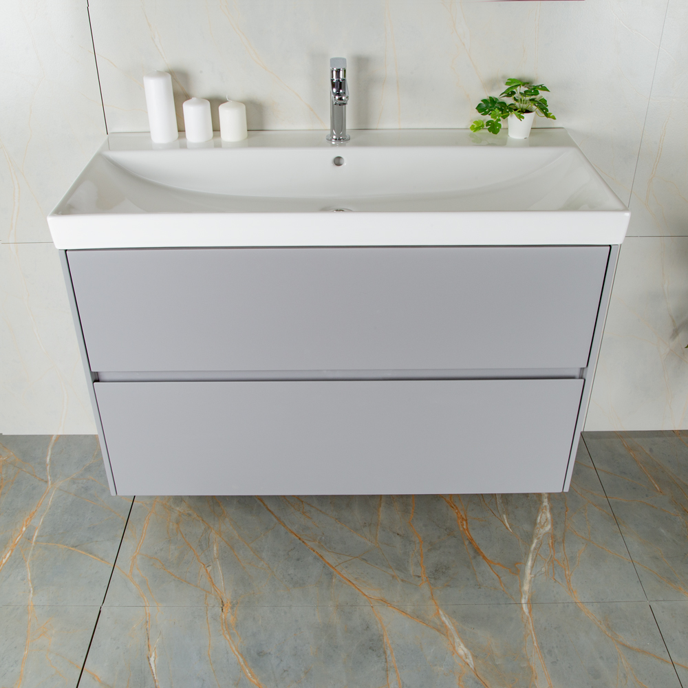 Тумба 1000 2ящ подвес + Раковина 02 Эмаль Платина мат ВЕРНИСАЖ AVS