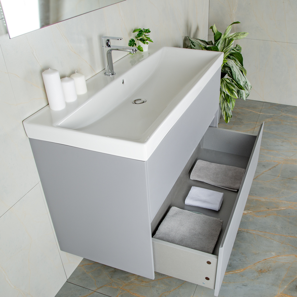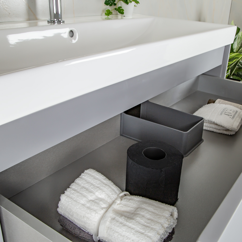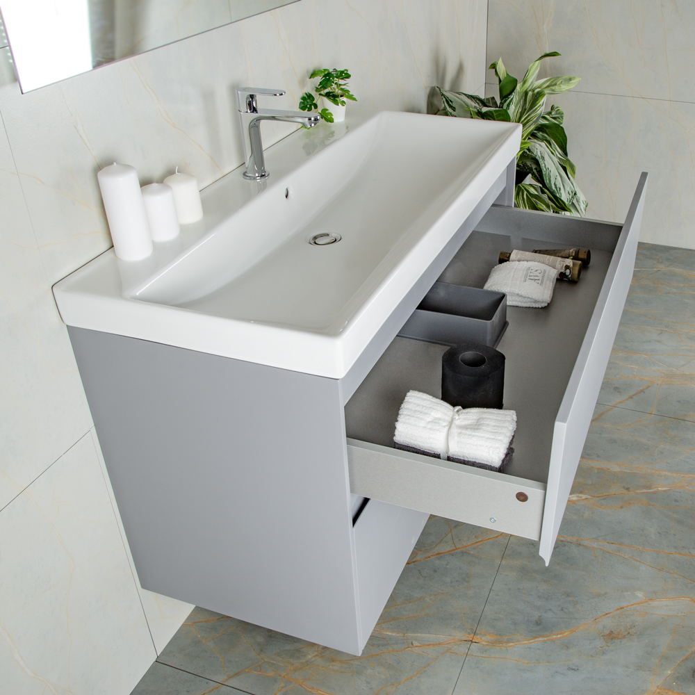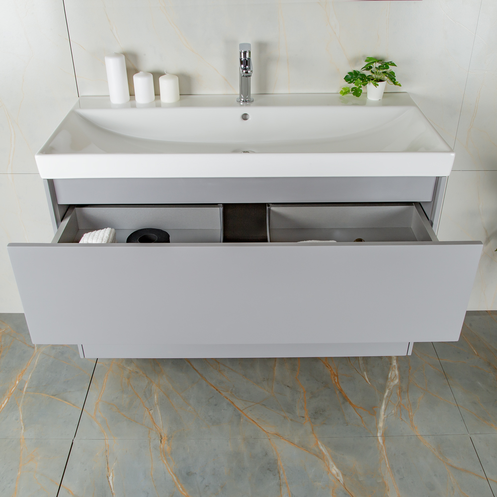 Тумба 1000 2ящ подвес + Раковина 02 Эмаль Платина мат ВЕРНИСАЖ AVS