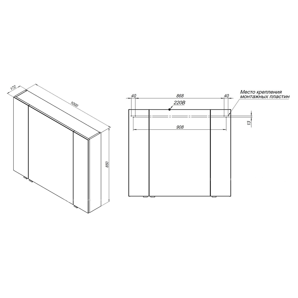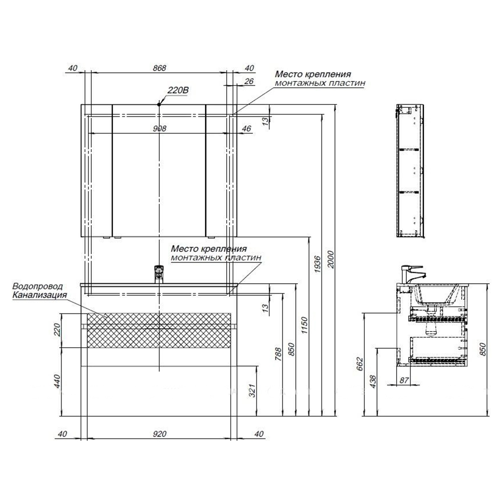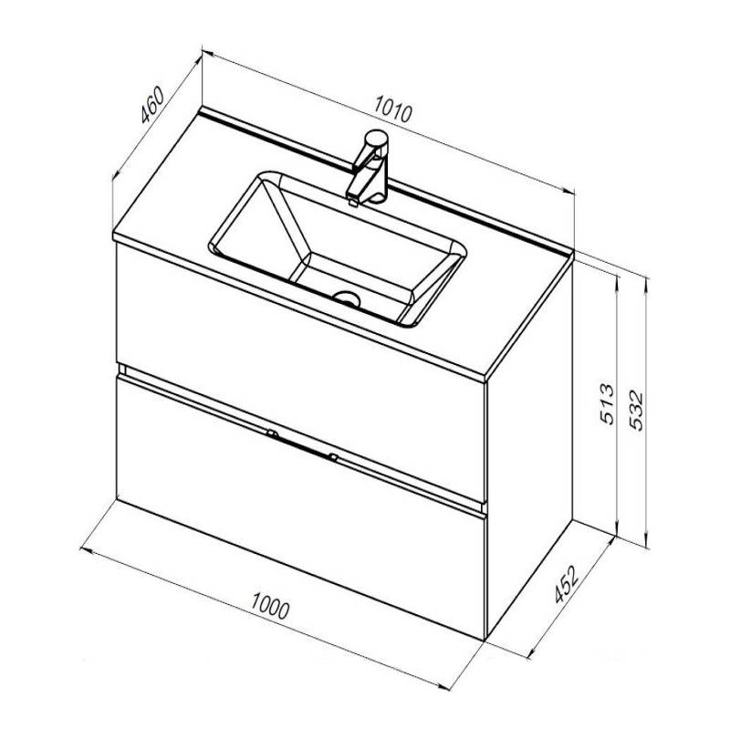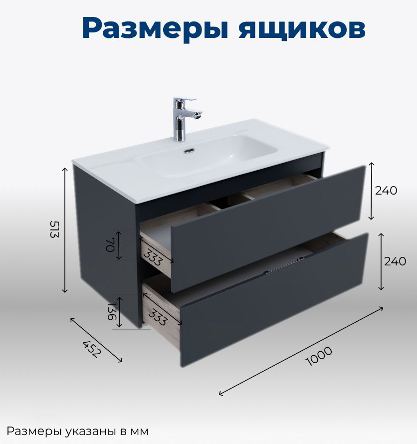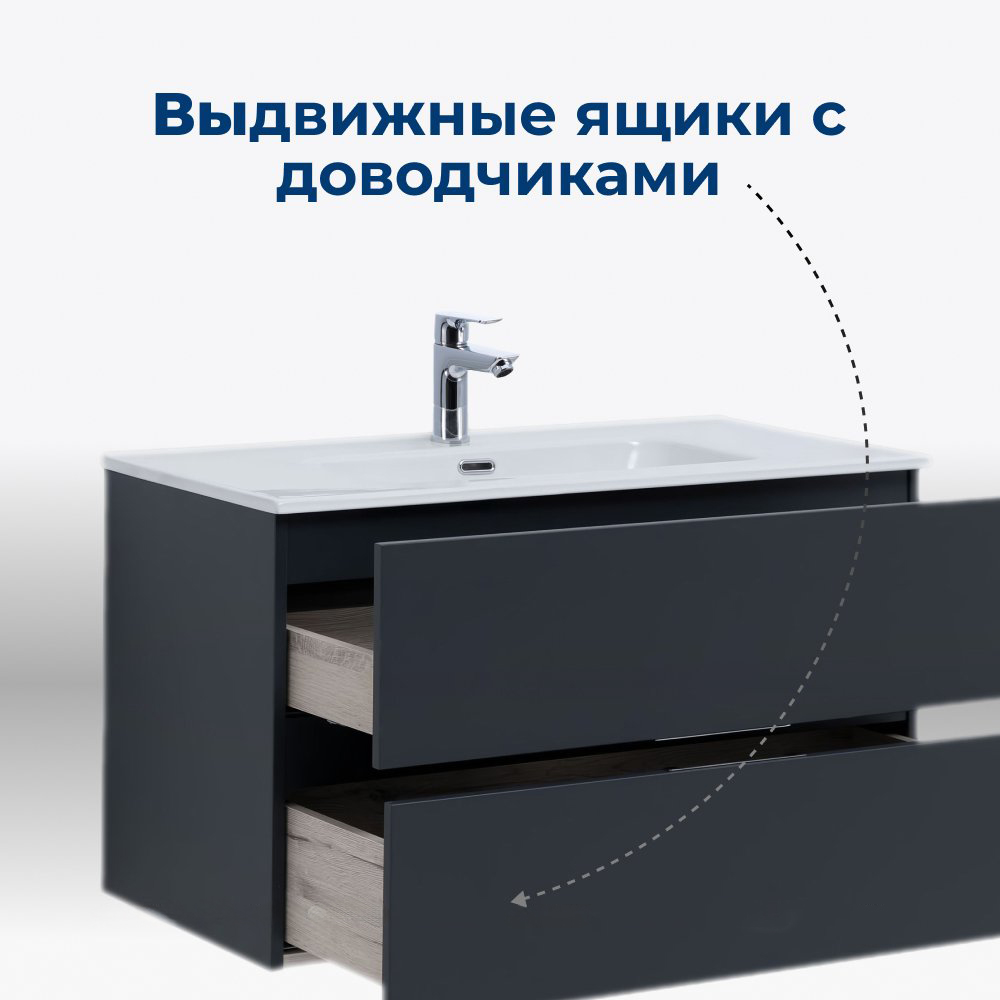 Тумба 1000 2ящ + Раковина Flat + З/Ш Антрацит АЛВИТА AQUANET