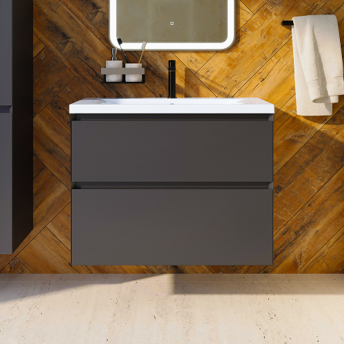 Тумба с раковиной AVS Гармония 80 антрацит матовая(раковина 01 белая глянцевая)