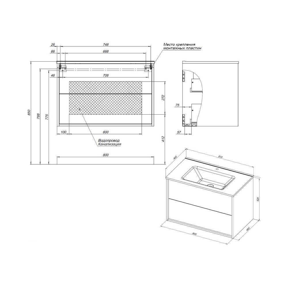 Тумба 800 + Раковина Дуб веллингтон Lino Flat AQUANET