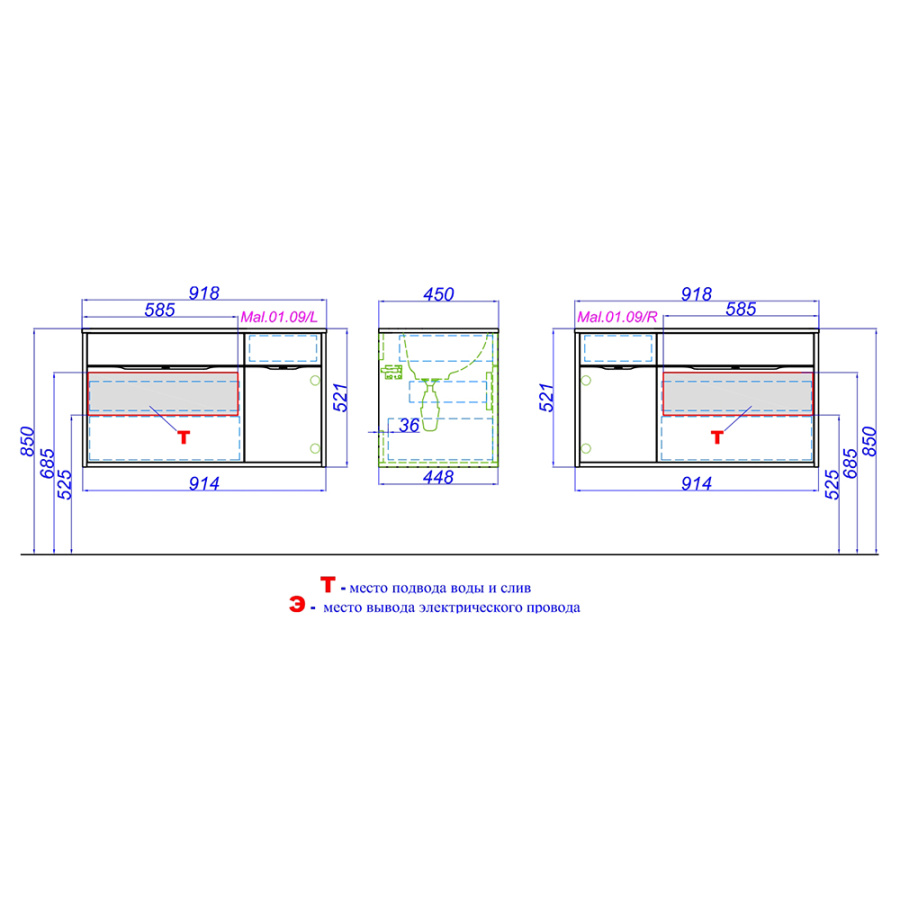 Тумба с раковиной 122 подвесная Malaga Aqwella Mal.01.12