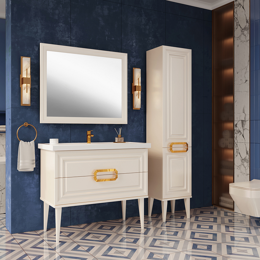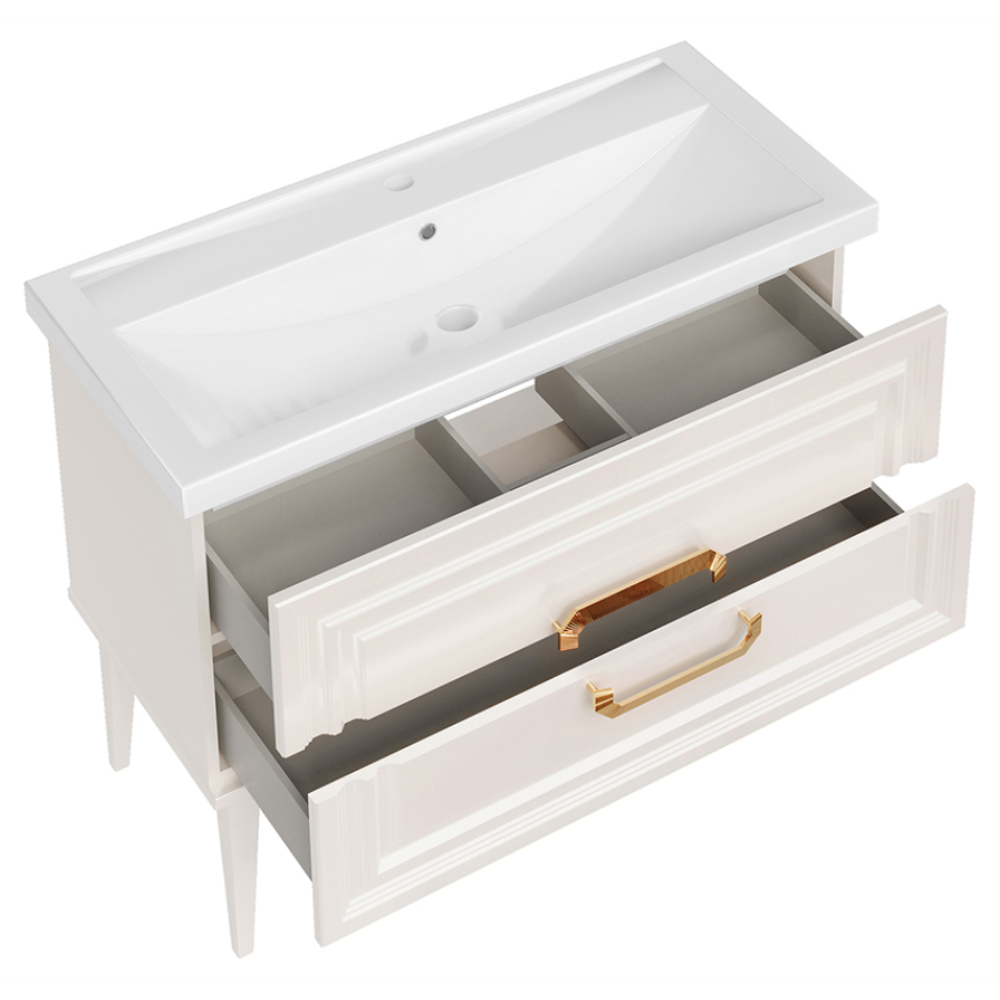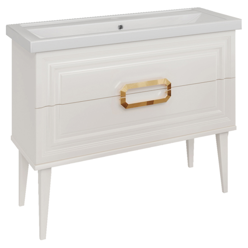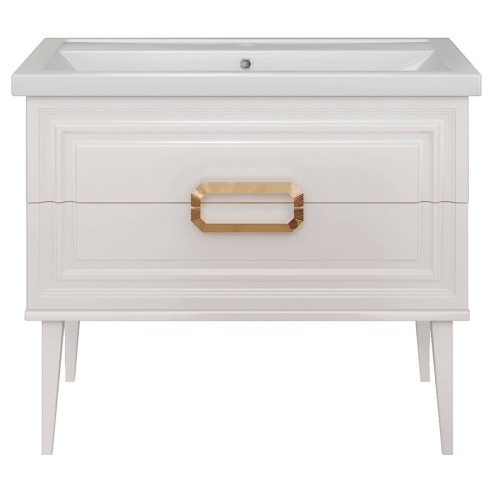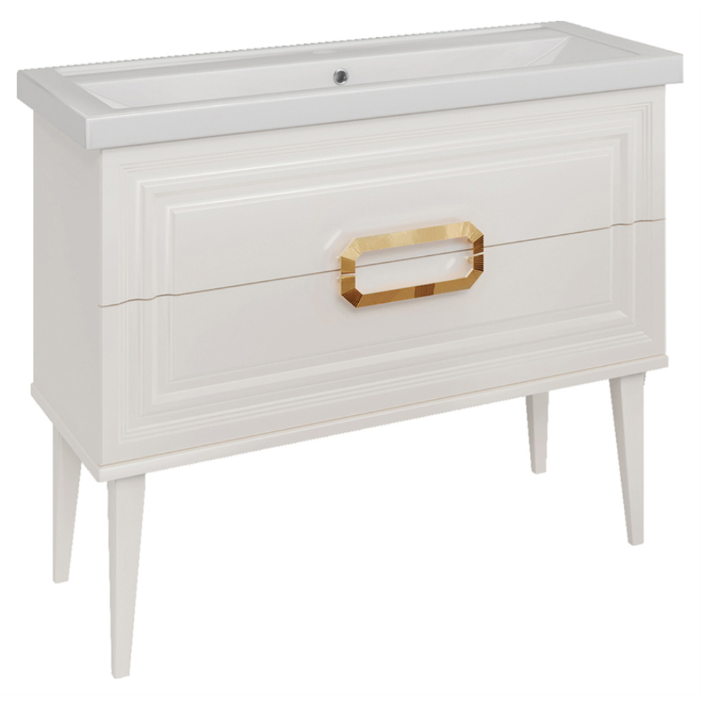 Тумба с раковиной ASB Летиция 100 белая, ручки золотые