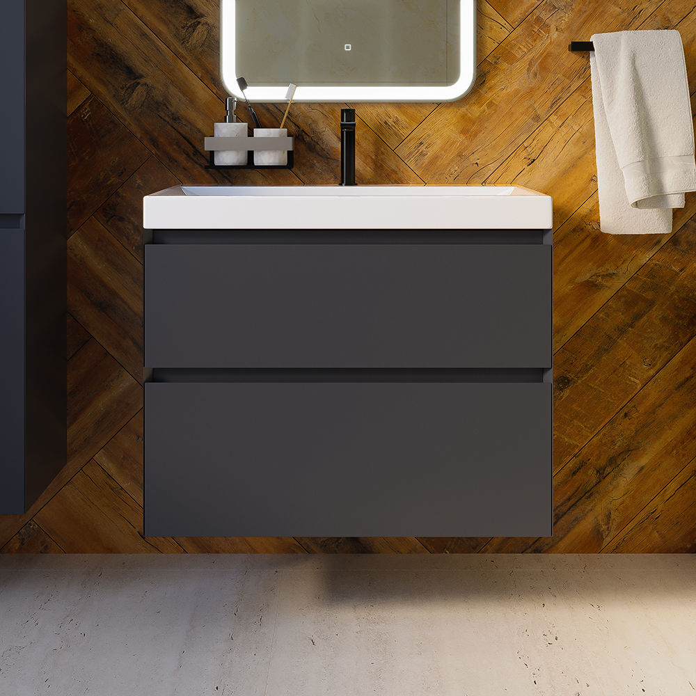 Тумба с раковиной AVS Гармония 80 антрацит матовая (раковина 02 белая глянцевая)