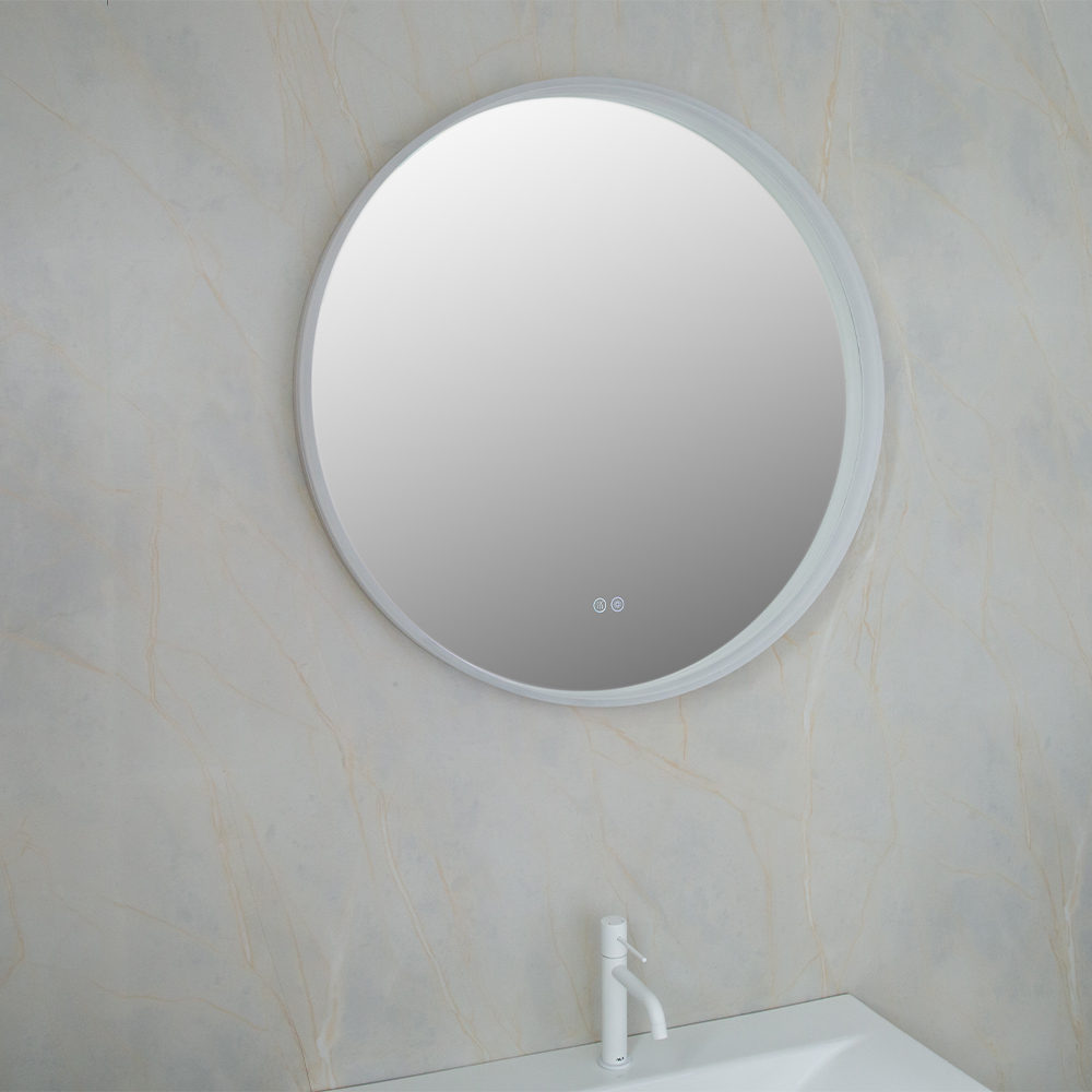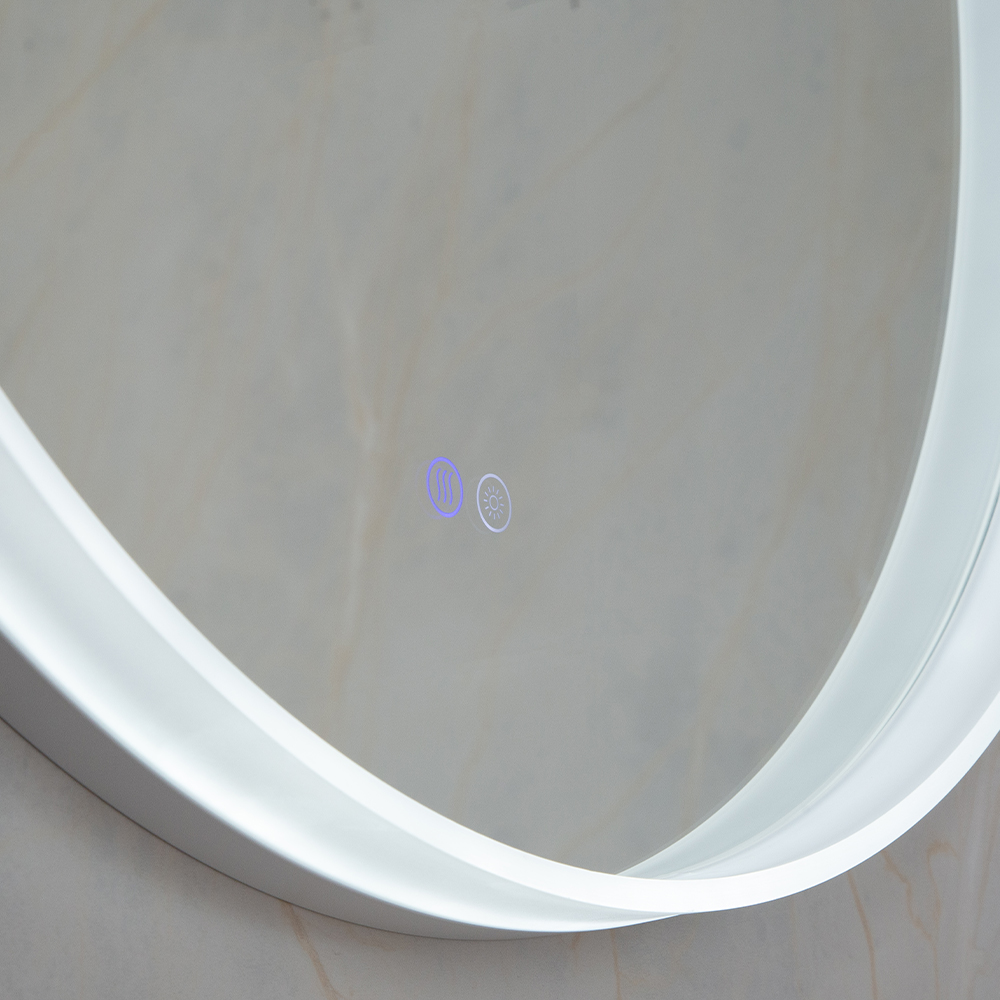 Зеркало из серебра без меди толщиной 5 мм с защитной пленкой сзади. Три цветовые температуры. Водонепроницаемость IP44. Мощность нагрева: 28 Вт. Мощность подсветки: 24 Вт.