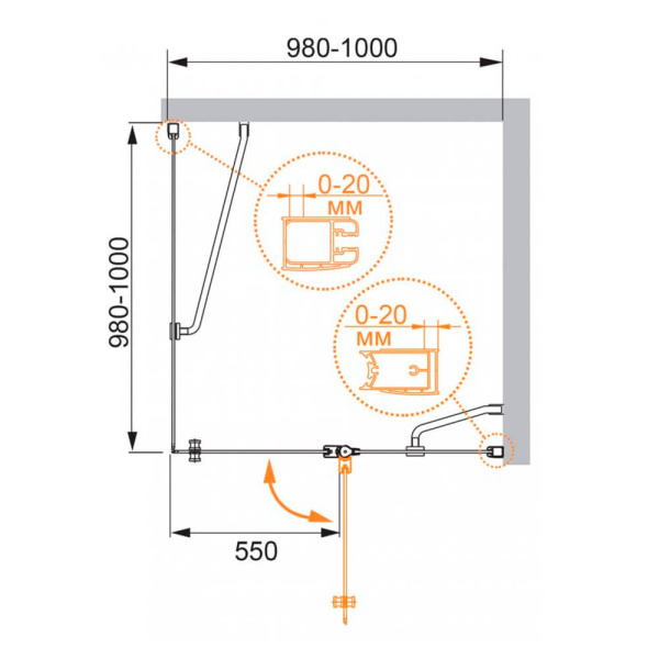 3. Поворотные душевые уголки