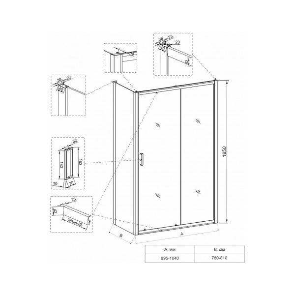 Идеальны для небольших ванных комнат. Двери открываются по направляющим, что экономит место и позволяет пользоваться уголком, не загромождая пространство.