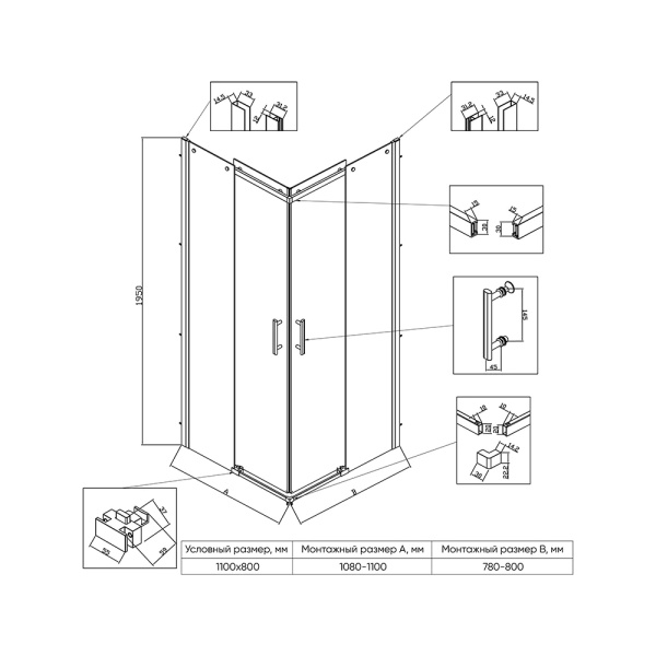 Душевой уголок AVS Квант 110x80 профиль хром, стекло прозрачное