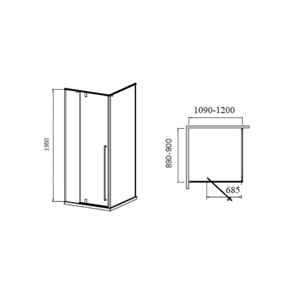 Душевой уголок BelBagno Uno UNO-195-AH-2-120/90-C-NERO 120х90 профиль черный, прозрачное стекло