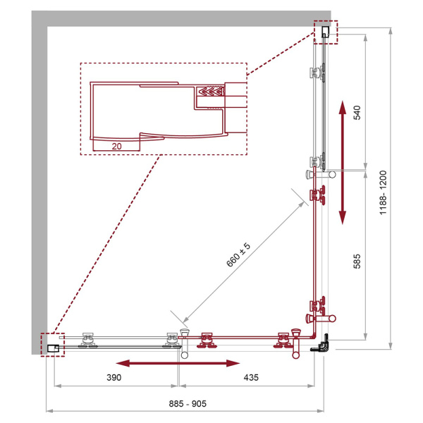 Идеальны для небольших ванных комнат. Двери открываются по направляющим, что экономит место и позволяет пользоваться уголком, не загромождая пространство.
