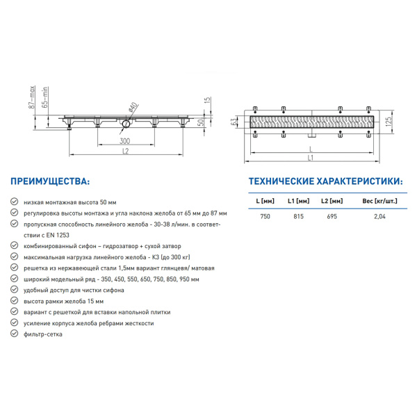 Важно выбрать лоток подходящей длины и ширины, чтобы он соответствовал размерам вашей душевой зоны. Также учитывайте форму лотка — прямоугольные и квадратные модели являются самыми популярными. - Материалы