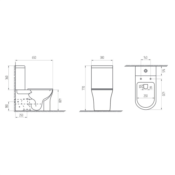 Это классические модели, которые устанавливаются на полу и подключаются к канализационной системе через отвод. Они идеально подходят для большинства санузлов и остаются актуальными независимо от тенденций в дизайне.