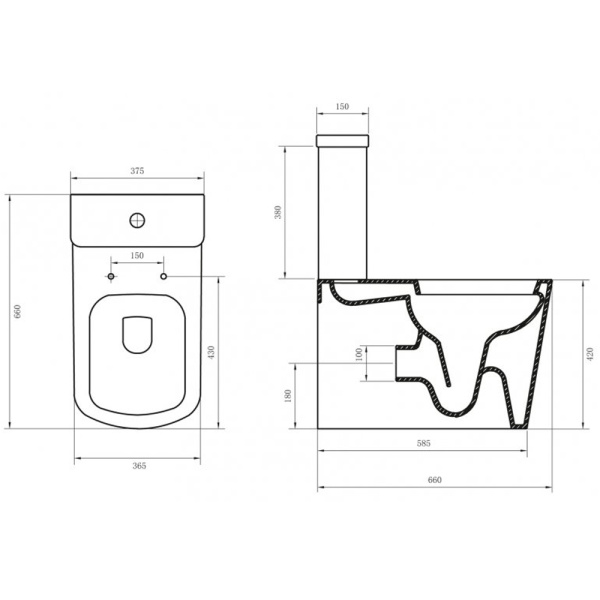 Унитаз-компакт AVS Импульс безободковый, черный матовый Унитаз-компакт AVS Импульс безободковый, черный матовый